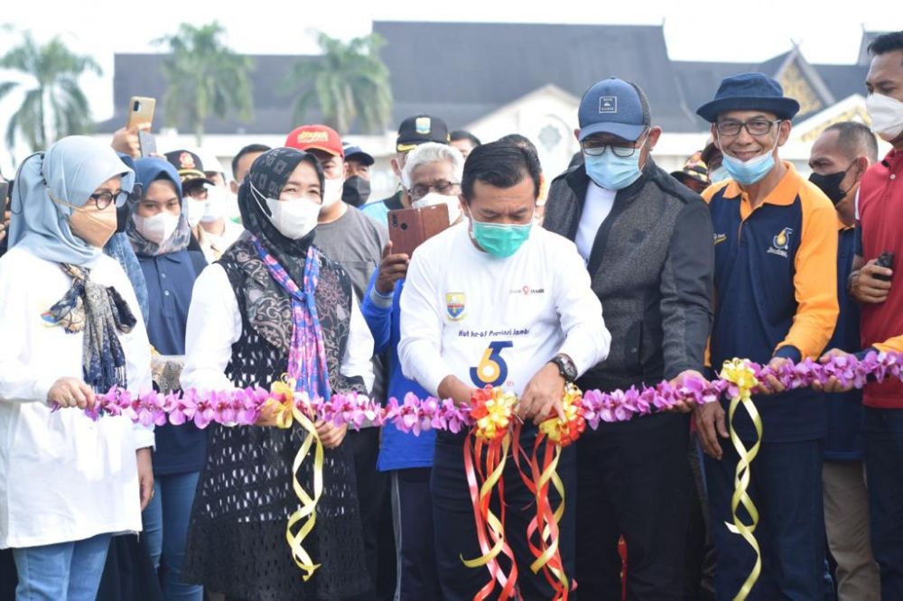 Al Haris sangat mengapresiasi semua pihak, seluruh masyarakat Jambi yang turut berkontribusi dalam memeriahkan HUT Provinsi Jambi hari ini, mulai dari jalan santai, sepeda santai, pameran dan bazar serta pasar tani.