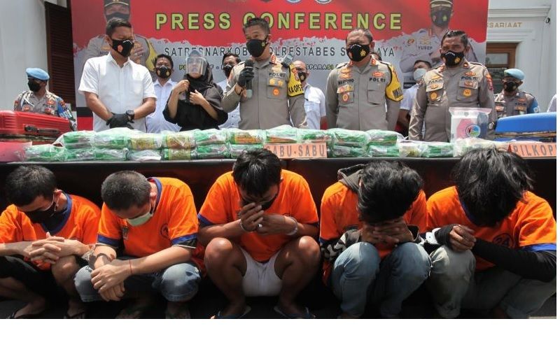 IMCNews.ID - Aparat Kepolisian Resor Kota Besar (Polrestabes) Surabaya, Jawa Timur, menggagalkan peredaran narkoba jenis sabu-sabu seberat 46,6 kilogram.