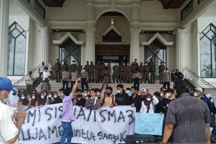 Saat menjalankan unjuk rasa di Kantor Gubernur, puluhan siswa itu diterima oleh Staf Ahli Gubernur Bidang Ekonomi Keuangan dan Pembangunan Provinsi Jambi Ariansyah, didampingi Sekretaris Dinas Pendidikan Nasional Provinsi Jambi M.Syahran dan Kapolsek Telanaipura Kota AKP Yumika Putra.