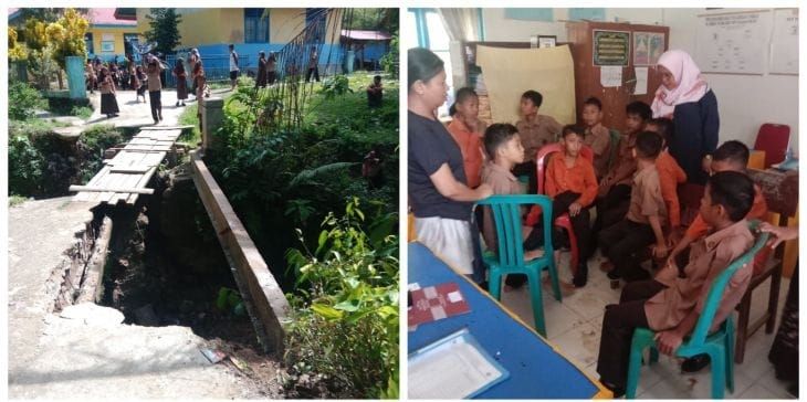 Akibat kejadian itu, akses menuju sekolah terputus dan terpaksa dialihkan melalui jembatan darurat yang dikerjakan pihak sekolah bersama masyarakat sekitar secara swadaya.
