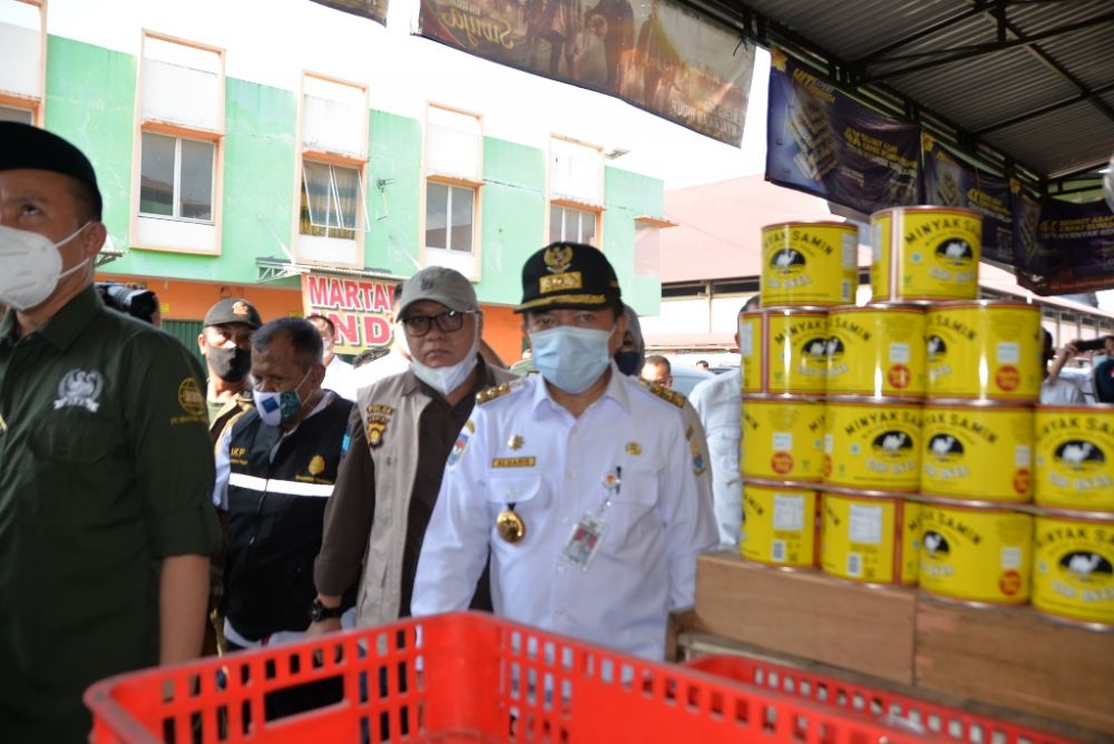 Gubernur Jambi, Al Haris bersama Sekretaris Daerah Provinsi Jambi, Kepala Bank BI Perwakilan Provinsi Jambi dan sejumlah OPD terkait melakukan sidak harga dan stok sembako di 2 (dua) pasar tersebut, Rabu (30/03/2022).