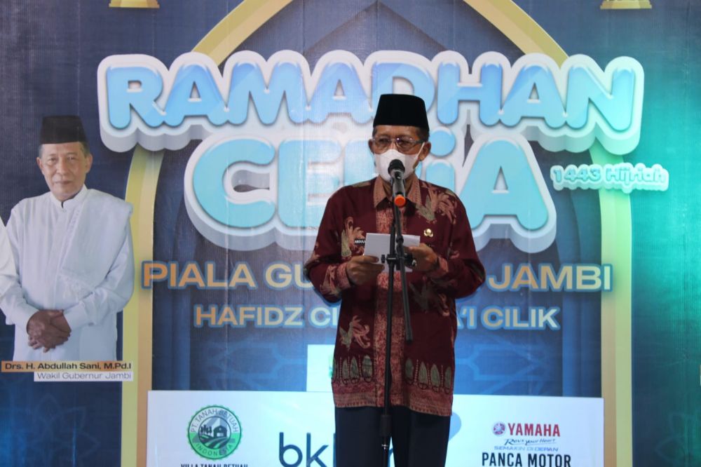 IMCNews.ID, Jambi – Wakil Gubernur Jambi, Drs.H.Abdullah Sani,M.Pd.I menyatakan, perlombaan da'i dan hafiz cilik ajang untuk menggali potensi serta bakat anak-anak dalam bidang dakwah, sehingga dapat mencetak generasi muda yang islami. Hal tersebut dinyatakan Sani saat membuka acara Pendidikan dan Pembinaan Hafiz dan Da'i Cilik Program Ramadhan Ceria, yang berlangsung di Studio 2 Jambi TV, Senin (11/04/2022).