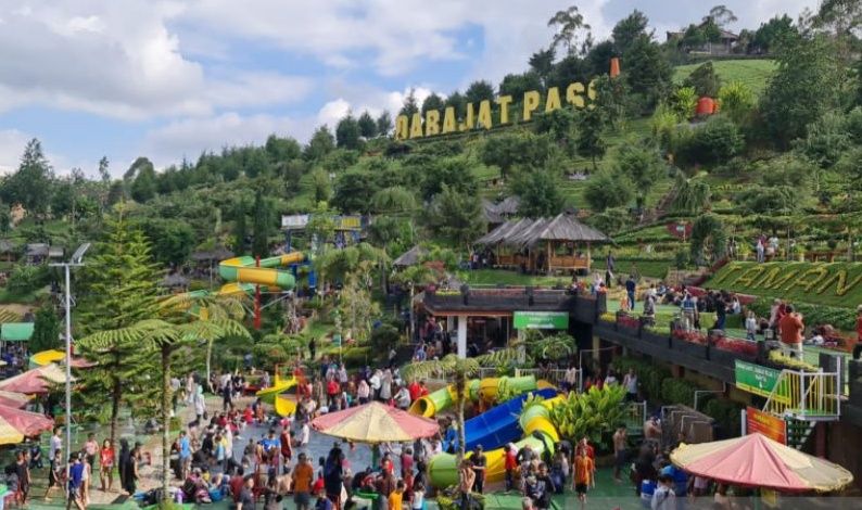 IMCNews.ID,Garut - Objek wisata pemandian air panas seperti Darajat di Kecamatan Pasirwangi dan Cipanas, Garut, di Kecamatan Tarogong Kaler, Kabupaten Garut, Jawa Barat, ramai oleh pengunjung dari berbagai daerah yang mengisi hari libur Lebaran, Rabu (04/5).