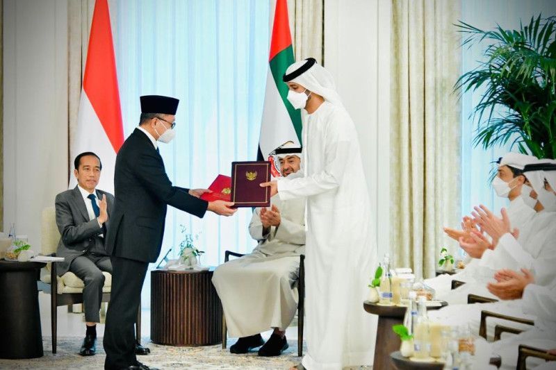 Perjanjian Indonesia-UAE CEPA ditandatangani Menteri Perdagangan RI Zulkifli Hasan dan Menteri Ekonomi Uni Emirat Arab (UEA) Abdulla bin Touq Al Marri, Jumat (1/7), bersamaan dengan kunjungan kerja Presiden Joko Widodo ke Abu Dhabi, UEA.