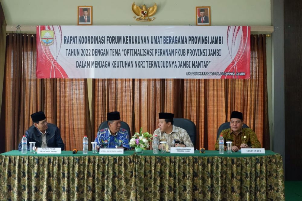 Kepala Badan Kesatuan Bangsa dan Politik (Kesbangpol) Provinsi Jambi, Mukti Said mengatakan, FKUB di berbagai daerah baik itu tingkat Provinsi maupun tingkat Kabupaten/Kota mengemban tugas penting bagi berlangsungnya kehidupan beragama ditengah tengah masyarakat untuk rukun dan damai serta melakukan pemberdayaan masyarakat dalam perjalanan pengemban tugas berhadapan dengan permasalahan.
