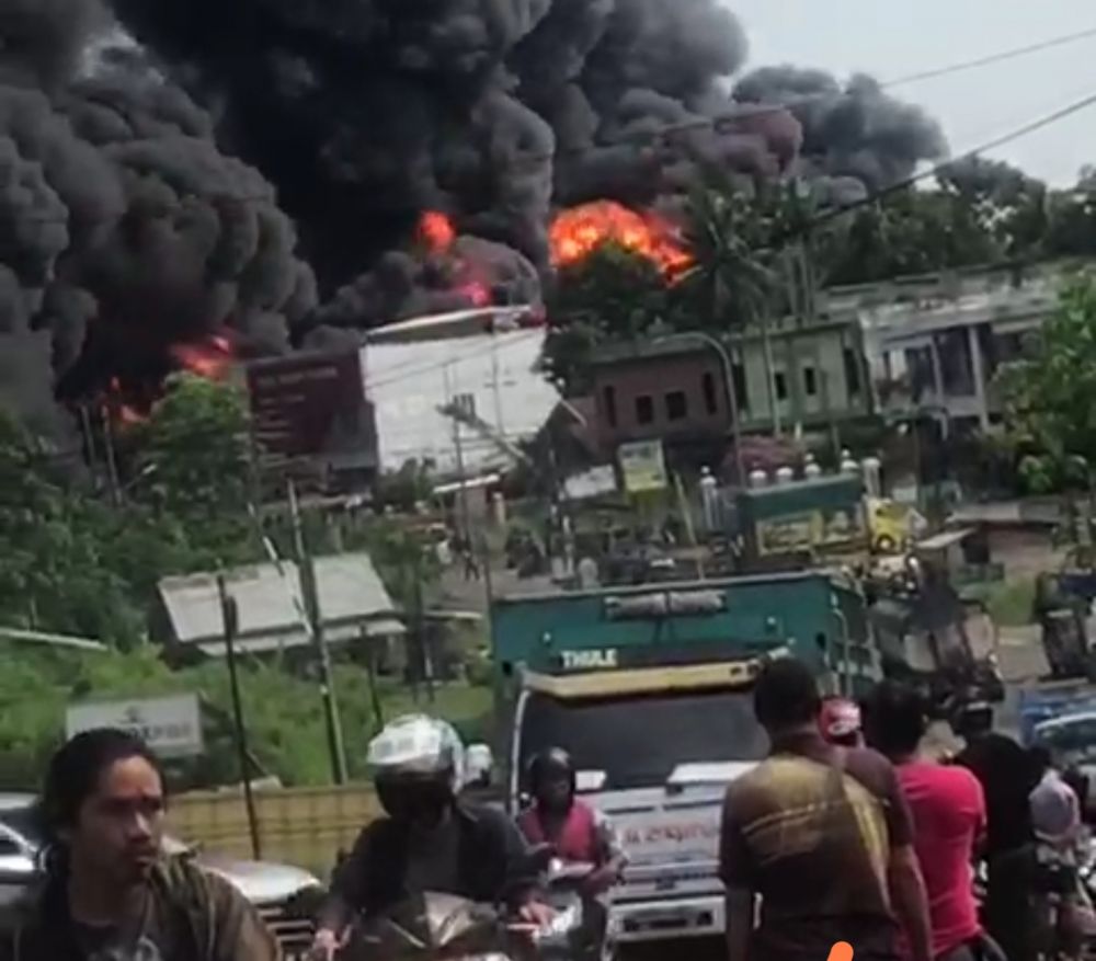 Kepulan asap hitam membumbung tinggi saat kebakaran itu terjadi. Bahkan Kobaran api terlihat hingga ke badan jalan. Peristiwa ini menyebabkan kepanikan warga sekitar.