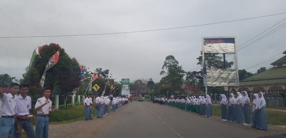 Semarak itu terpantau sedari pagi, para siswa dan masyarakat tersebut rela menunggu sambil berbaris sambil memegang bendera merah putih, menunggu kedatangan Bupati Batanghari serta pejabat TNI.