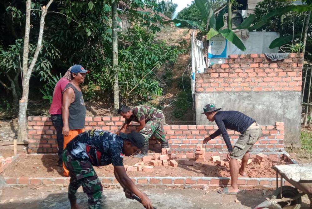 IMCNews.ID, Muarabulian - Satgas TMMD ke 115 Kodim 0415 Jambi bersama masyrakat Desa Kembang Seri Baru bahu membahu dalam membuat tempat wudhu dan Mandi Cuci Kakud (MCK) di Mushola.