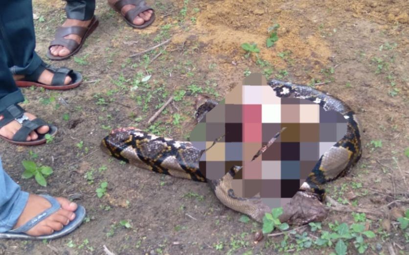 Warga lalu menangkap ular tersebut dan langsung membunuhnya. Saat dipotong, benar saja, tubuh korban ditemukan dalam perut ular tersebut.