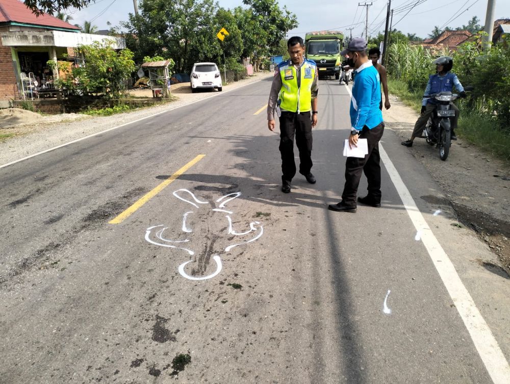 Pengendara motor bernama Linda Sri Yani, warga Desa Gerunggung, Kecamatan Sekernan, Kabupaten Muaro Jambi tewas terlibdas truk Fuso ekspedisi.
