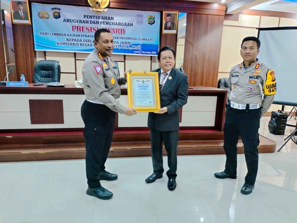 Direktrur LEMKAPI DR Edi Saputra Hasibuan mengatakan, Anugerah dan Penghargaan Presisi Awards ini diberikan kepada Ditlantas Polda Jambi berdasarkan penelitian serta penilaian timnya selama dua bulan di Jambi.
