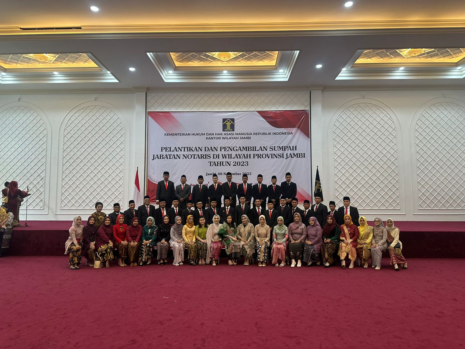 IMCNews.ID, Jambi - Sebanyak 52 notaris muda dilantik dan diambil sumpah janjinya pada Rabu (8/11/2023) pagi tadi. Pelantikan dan pengambilan sumpah notaris ini dilaksanakan di Maulidia Convention Center (MCC) Jambi.