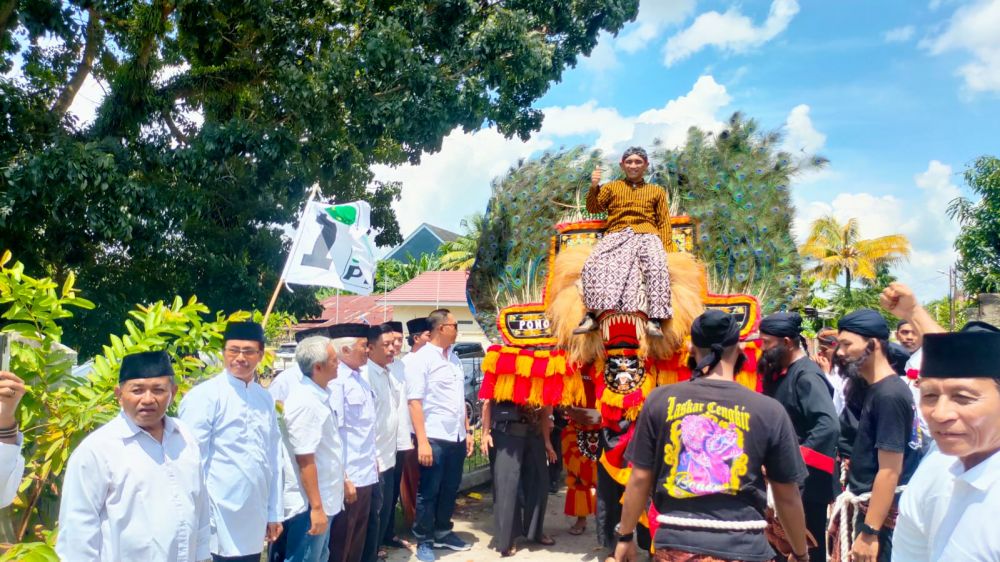Eko yang merupakan Ketua Genarasi Muda Wisnumurti Provinsi Jambi datang ke PKB diiringi kesenian Reog Ponorogo dan puluhan tim pemenangan.