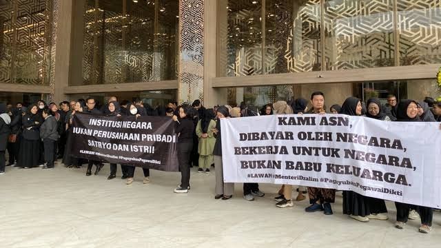Aksi protes itu, salah satunya dipicu oleh pemberhentian secara mendadak kepada salah seorang pegawai Kemdiktisaintek bernama Neni Herlina.