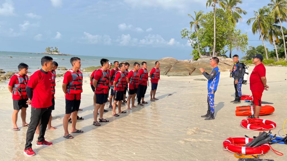 Para peserta dibekali kemampuan dasar menjadi seorang penyelemat kategori penyelamatan ringan di air.