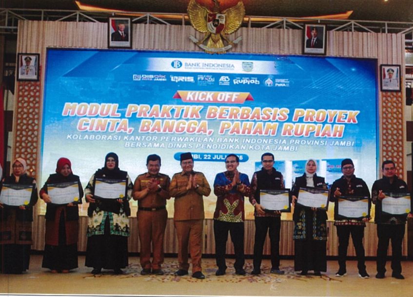 IMCNews.ID, Jambi - Kantor Perwakilan Bank Indonesia Provinsi Jambi bersama Pemerintah Kota Jambi resmi meluncurkan Modul Praktik Berbasis Proyek Cinta, Bangga, dan Paham (CBP) Rupiah untuk Sekolah Dasar (SD) pada Selasa, 22 Juli 2025 di Griya Mayang, Kota Jambi.