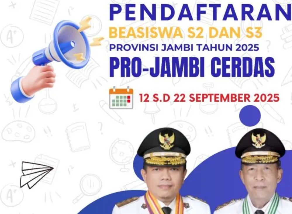 IMCNews.ID, Jambi - Pemerintah Provinsi Jambi resmi membuka pendaftaran beasiswa strata dua dan tiga (S2 dan S3). Proses pendaftaran dibuka mulai 22 September 2025.