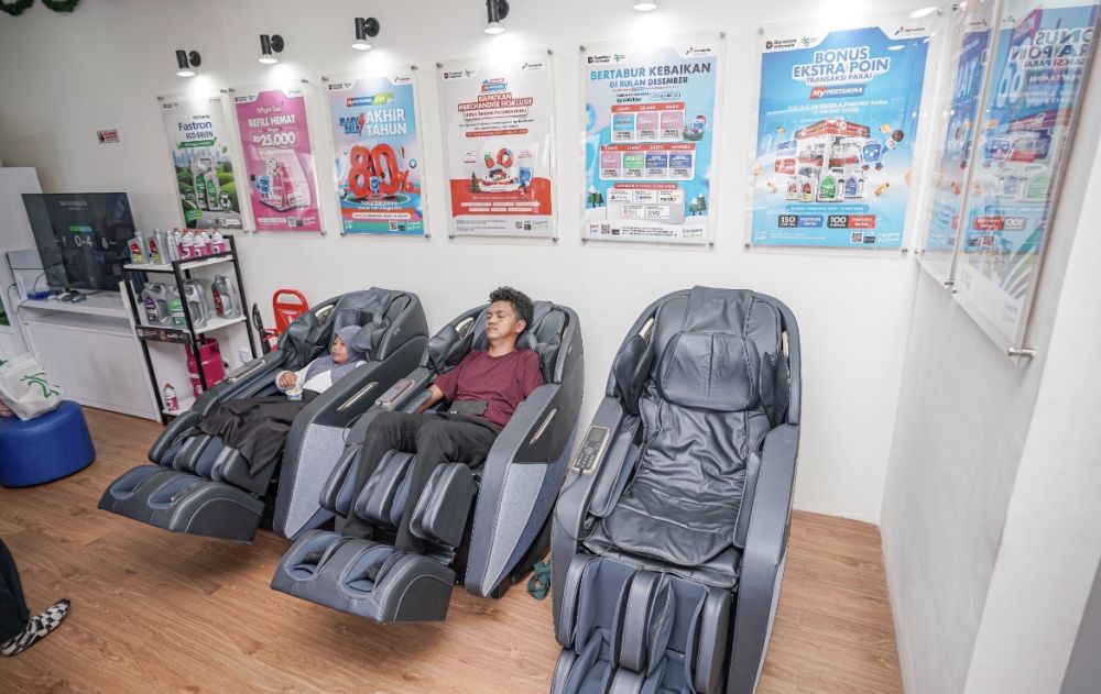 “Perjalanan panjang membuat anak-anak mulai bosan di mobil. Kami kemudian mendapat informasi bahwa di Serambi MyPertamina tersedia kids corner yang bisa digunakan secara gratis. Ini sangat membantu, anak-anak jadi senang dan kembali bersemangat. Saya juga mencoba fasilitas kursi pijat yang sangat membantu untuk relaksasi. Sangat direkomendasikan untuk singgah, karena yang beristirahat bukan hanya orang tua, tetapi anak-anak juga bisa ikut refresh,” ujar Amri.