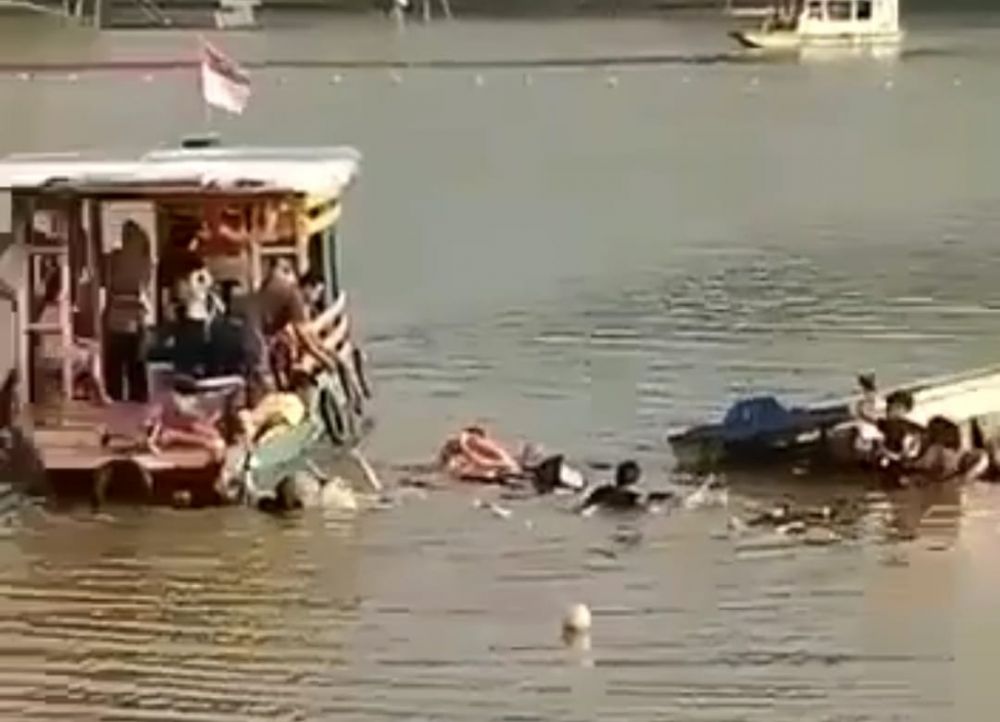 Sementara itu, Humas Basarnas Jambi, Lutfi saat mengatakan kejadian tersebut akibat di bagian depan terlalu banyaknya penumpang yang berfoto-foto.