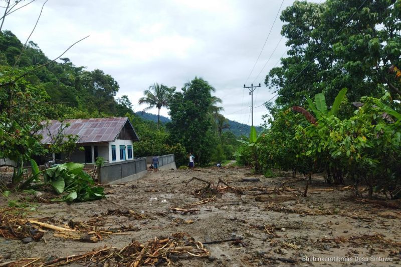 Untuk Dusun I Desa Sintuwu terdapat 48 rumah warga terdampak material banjir dan longsor, dan Dusun II terdapat 15 rumah warga terdampak.