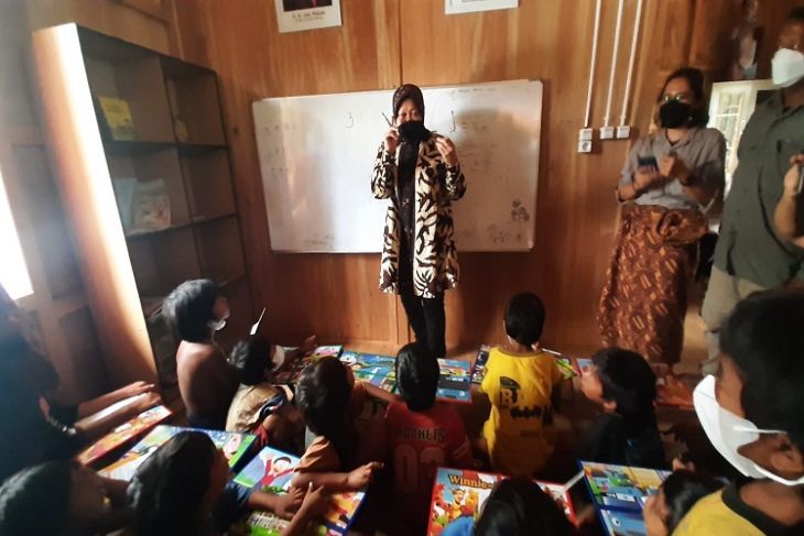 Kehadiran Menteri Sosial mendapat sambutan hangat dari masyarakat Suku Anak Dalam (SAD). Menteri perempuan yang mantan Wali Kota Surabaya itu menyapa anak-anak yang sedang belajar membaca dan berhitung dengan mengambil tempat di rumah panggung.