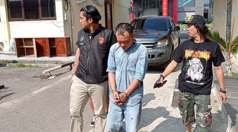Pelaku TS ditangkap tim Opsnal Unit 1 Subdit III Jatanras pada Senin siang dengan tangan diborgol dan tertunduk lemas saat diringkus ke Marpolda Sumsel.