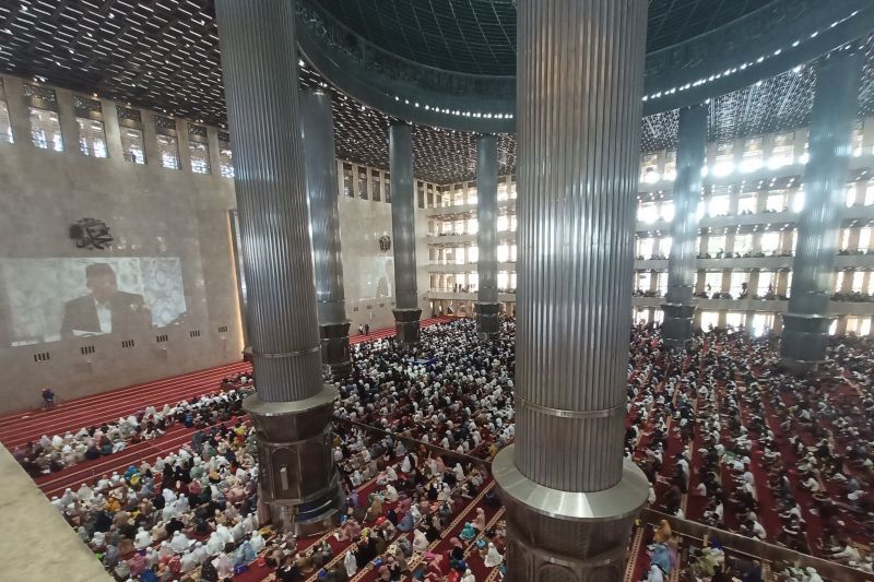 Penuh sesaknya jamaah terlihat dari lantai yang dipakai untuk melaksanakan shalat, lantai dasar hingga tiga lantai di atasnya dipenuhi jamaah. Sementara jamaah perempuan menempati sisi kiri lantai dasar dan lapangan terbuka Istiqlal.