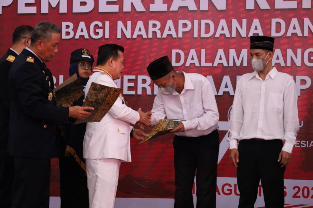 Dokumen remisi ini diserahkan oleh Gubernur Jambi Al Haris secara simbolis kepada narapidana di lembaga permasyarakatan Klas II A Kota Jambi Jambi, Kamis (17/08/2023).