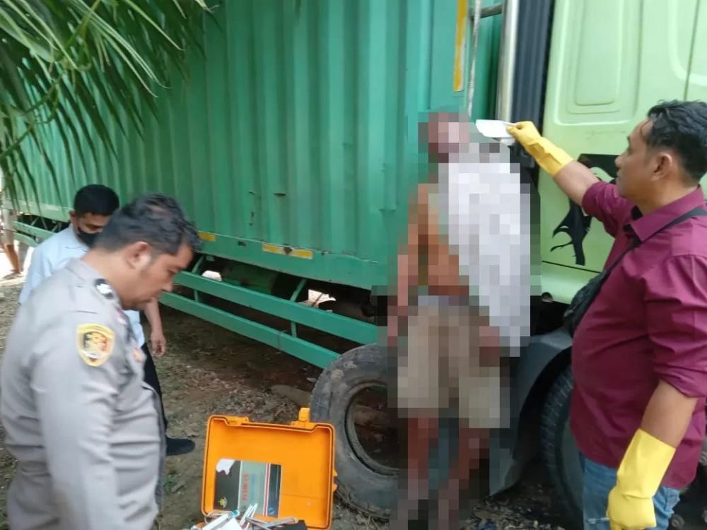 Dia gantung diri di kontainer truk yang dia bawa sendiri dengan nomor polisi BE 8735 PN. Saat ditemukan, leher korban terjerat tali tambang di bak samping kanan truknya.