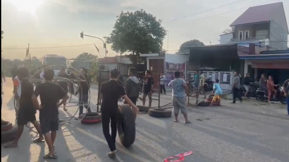 Sekitar pukul 22.30 Wib, masyarakat Desa Mandiangin kembali melakukan aksi pemblokiran jalan di Jalan Bangunan Nasional Desa Mandiangin menggunakan kayu dan ban bekas yang dilintangkan ditengah jalan.
