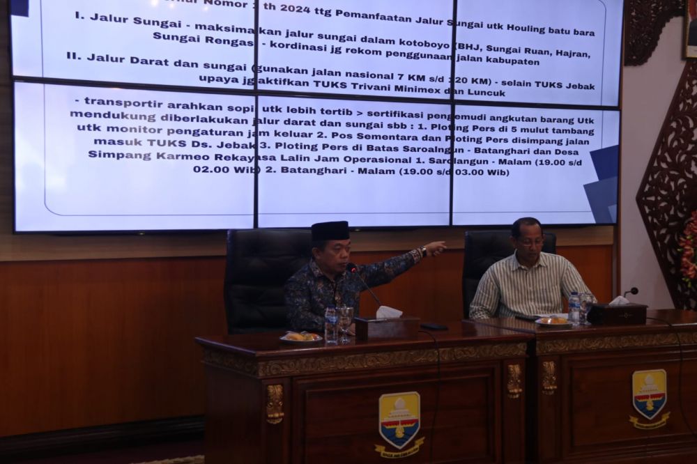 "Saya sudah mengeluarkan instruksi gubernur tentang proses pengangkutan batu bara menggunakan jalur sungai. Tetapi ada juga yang tidak bisa menggunakan jalur air karena posisi tambang itu tidak bisa diarahkan ke jalur air," jelas Al Haris usai pertemuan.