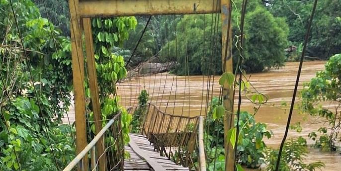 " Saat ini debit air sungai sangat dalam dan deras. Sangat berbahaya, bisa hanyut. Kami berdoa semoga air cepat surut dan warga bisa beraktivitas seperti biasa," kata Zainadi.