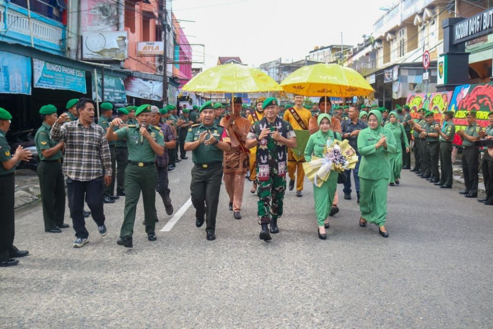 IMCNews.ID, Bungo - Kodim 0416/Bute menggelar acara tradisi penyambutan pejabat Dandim baru, Letkol Inf Dedy Pungky Irawanto, S.I.P., M.I.Pol, beserta istri, Vilana Dedy Pungky bertempat di Makodim 0416/Bute, Kabupaten Bungo, Sabtu (12/04/2025) lalu.