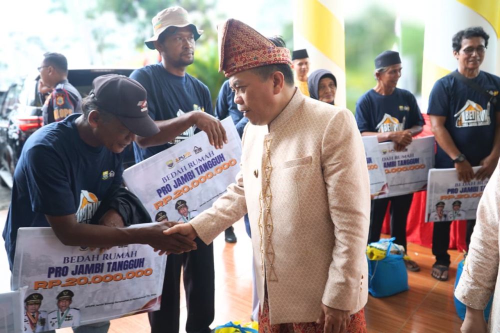 Gubernur Jambi, Dr. H. Al Haris, S.Sos., M.H., menyerahkan secara simbolis bantuan 51 unit program Bedah Rumah Pro Jambi Tangguh dengan total nilai Rp. 1.020.000.000 (Rp20 Juta/Rumah).